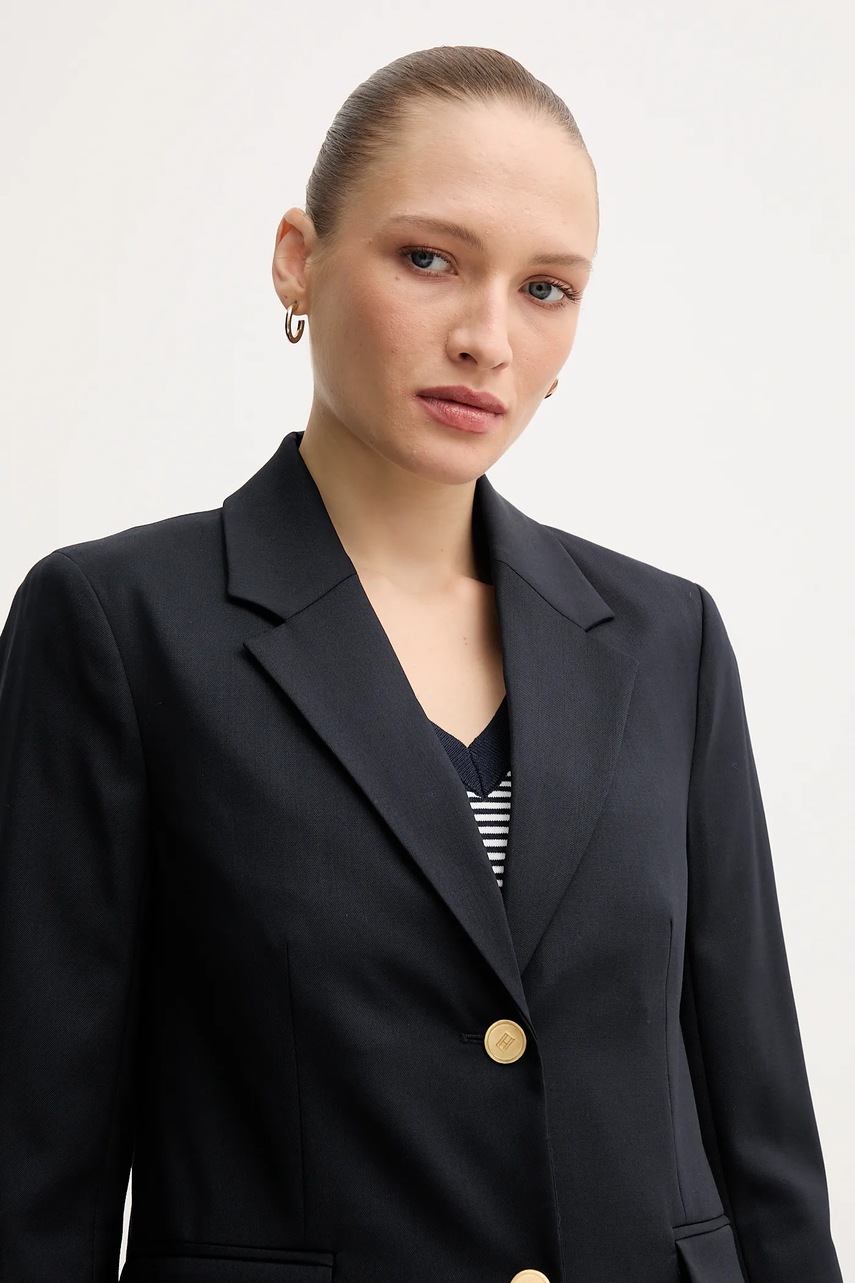Tommy Hilfiger marynarka z dodatkiem wełny kolor granatowy jednorzędowa gładka WW0WW46662