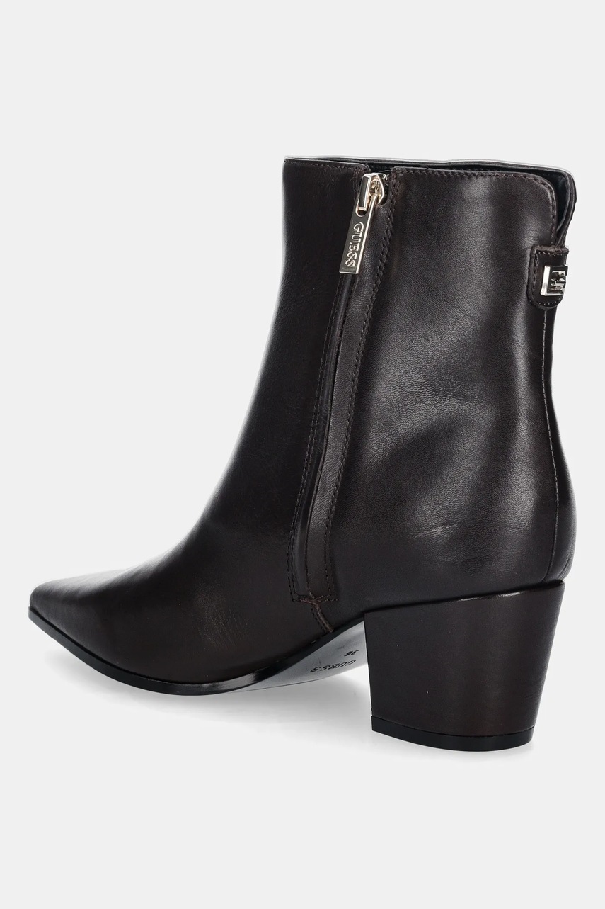 Guess botki skórzane HALISA damskie kolor brązowy na słupku FLFHAL LEA10