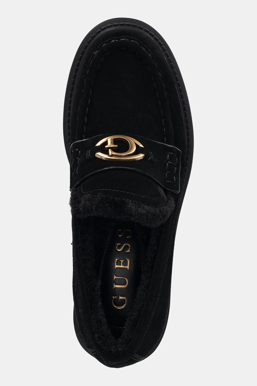 Guess mokasyny zamszowe YANIKAY damskie kolor czarny na płaskim obcasie FLFYKY SUE14