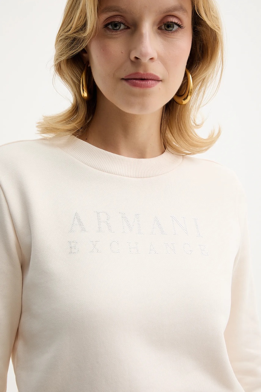 Armani Exchange bluza bawełniana damska kolor beżowy gładka XW000985 AF14284
