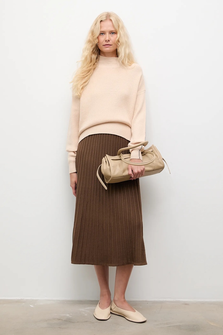 Answear.LAB spódnica z kaszmirem kolor brązowy midi prosta