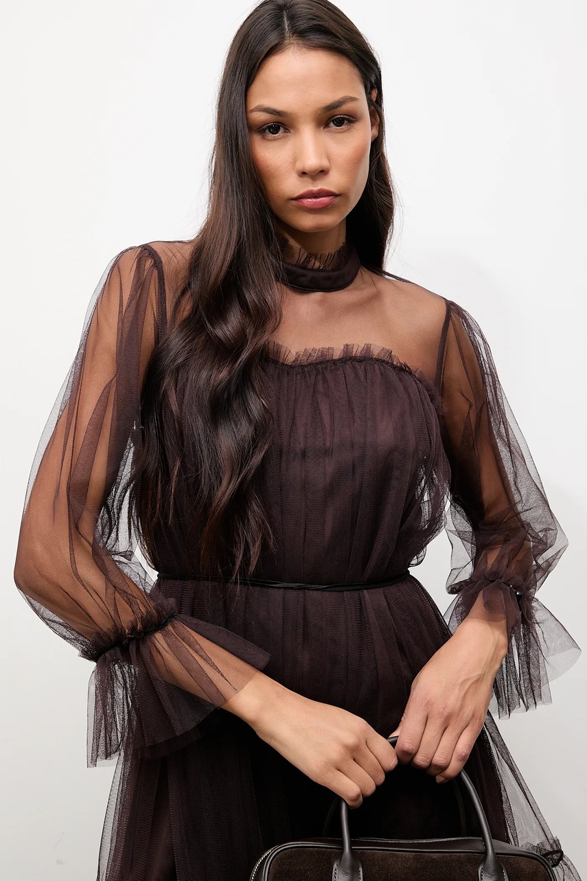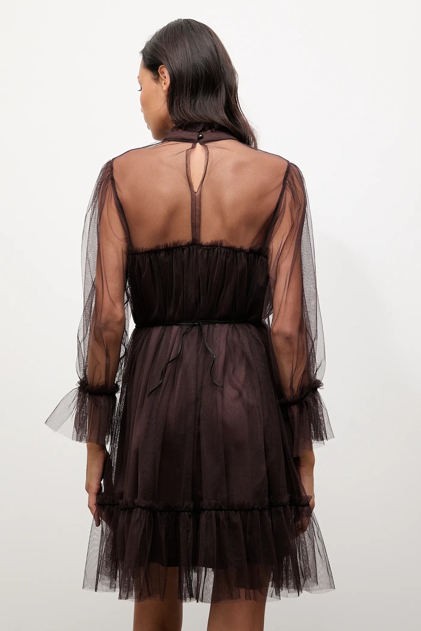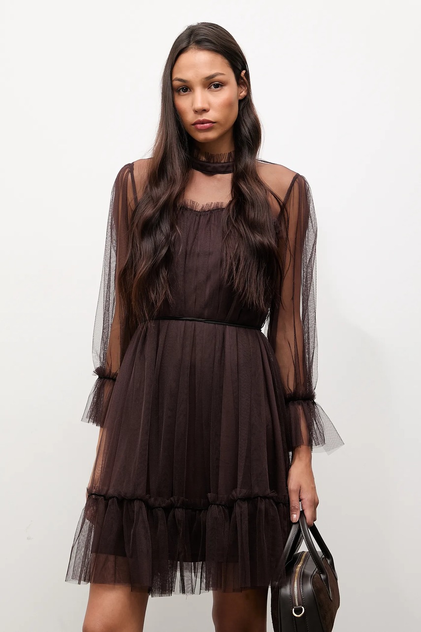 Answear.LAB sukienka kolor brązowy mini rozkloszowana
