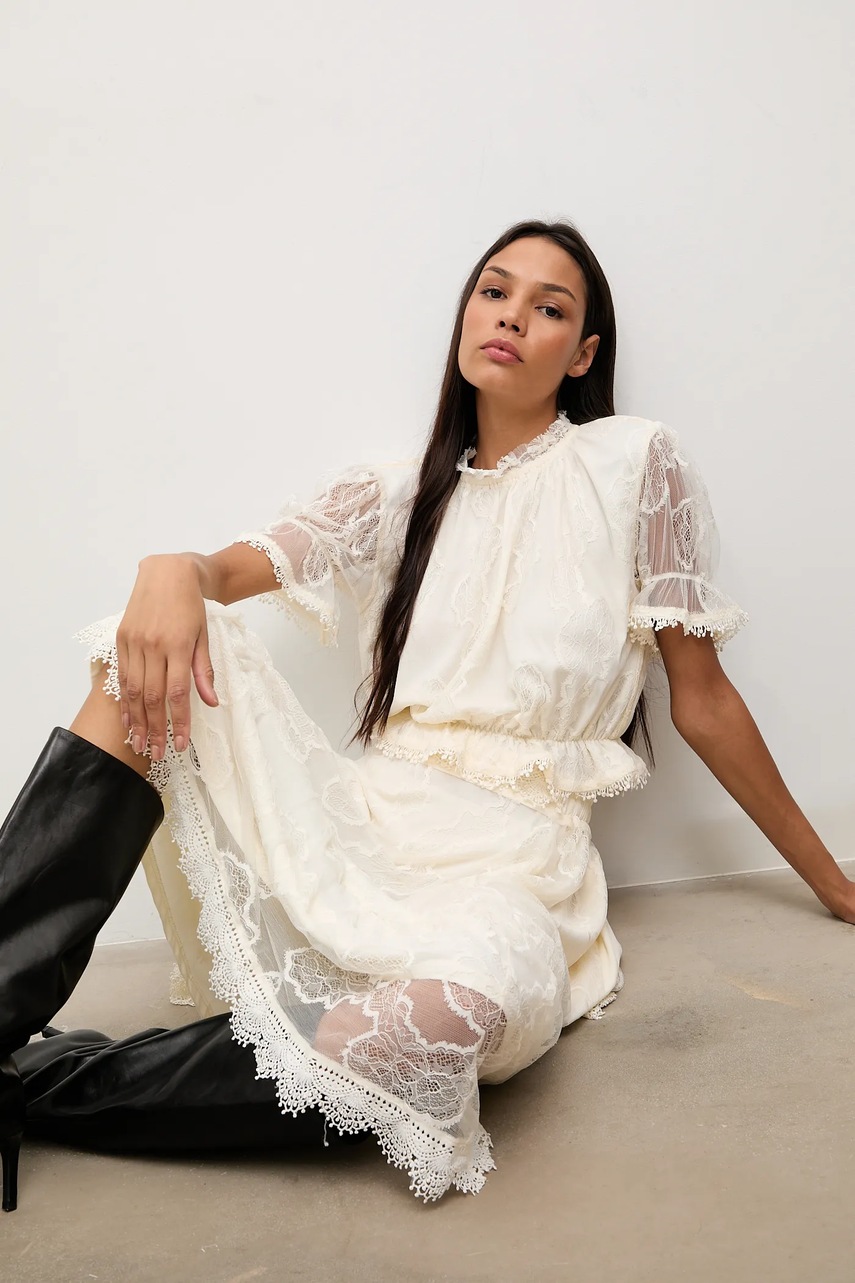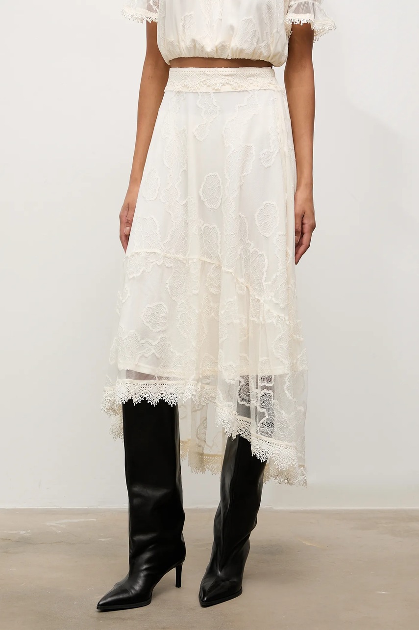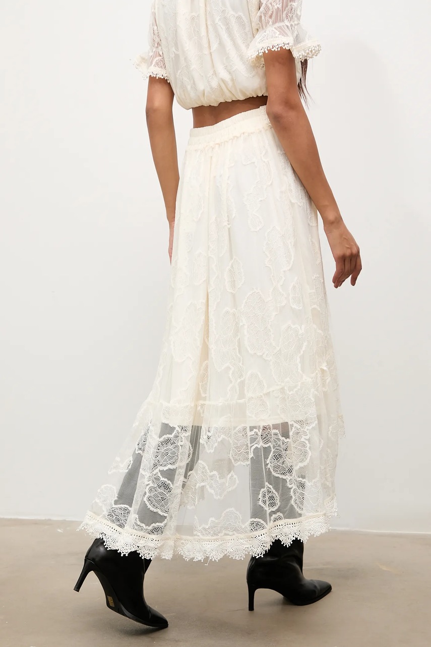 Answear.LAB spódnica kolor beżowy midi rozkloszowana