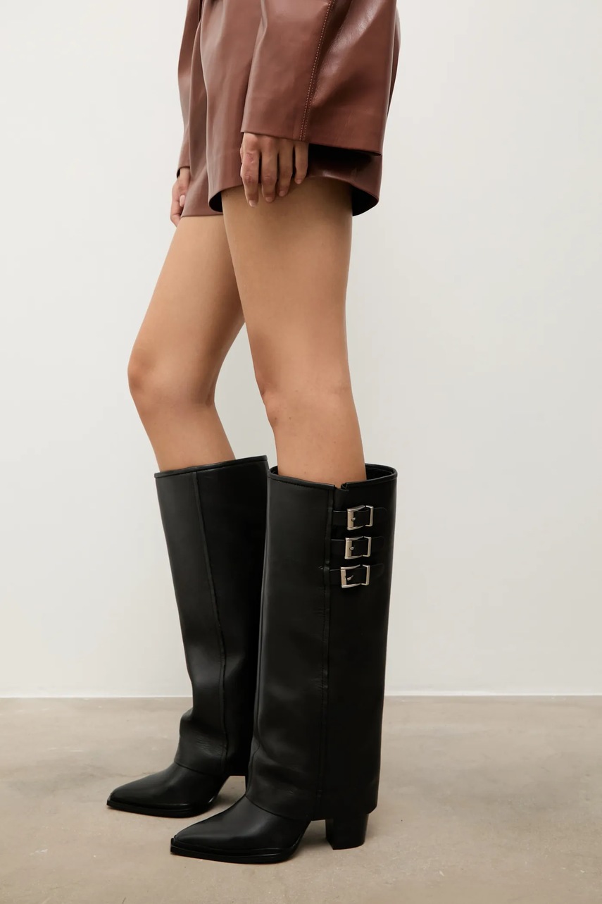 Answear.LAB kozaki skórzane kolor czarny na słupku