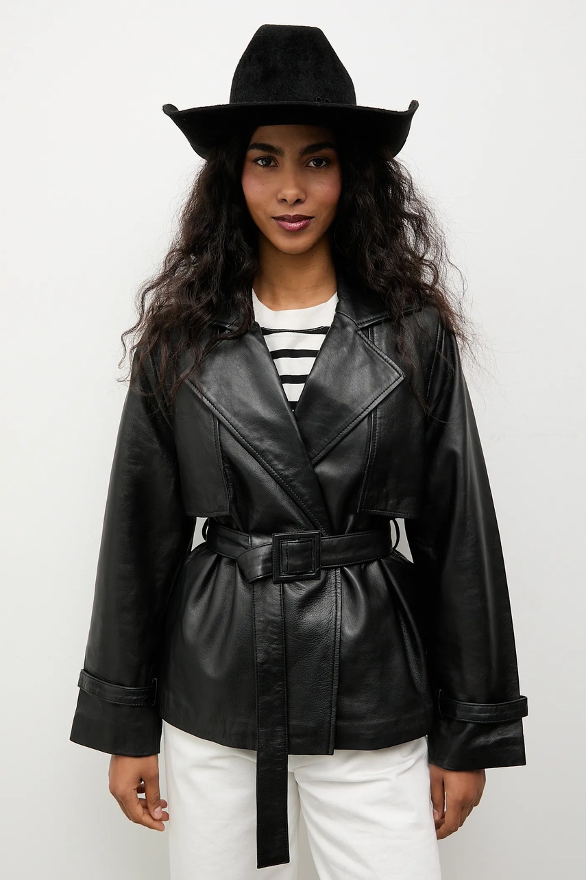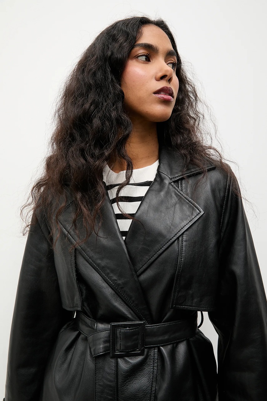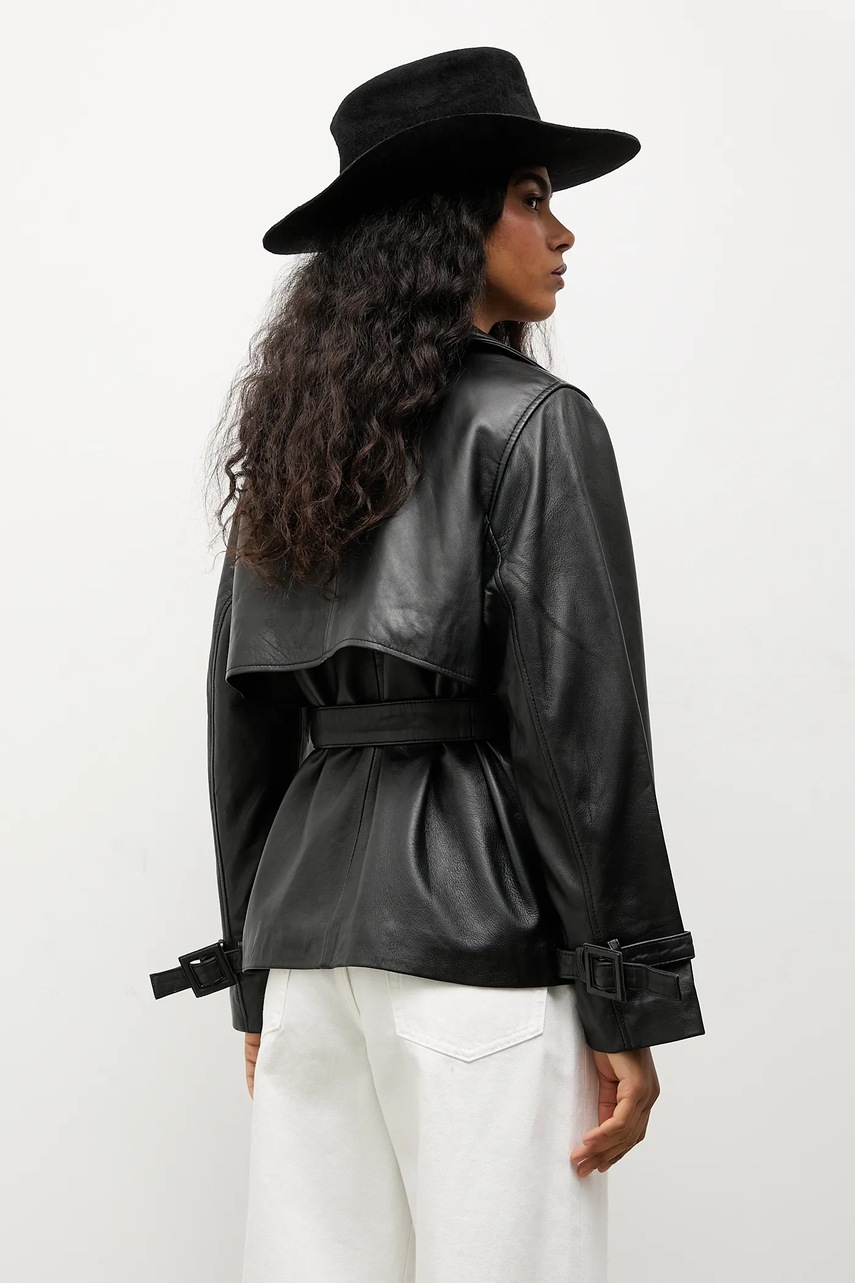 Answear.LAB kurtka skórzana kolor czarny przejściowa