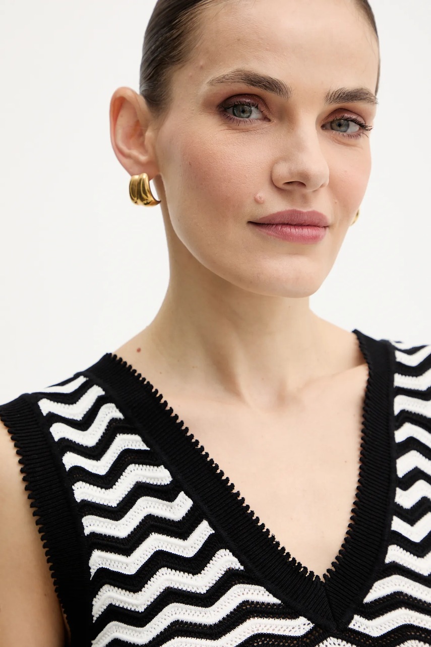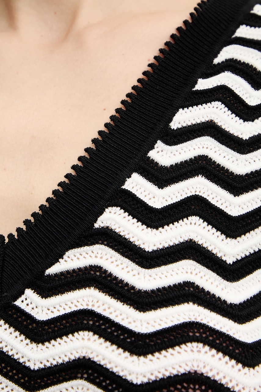- Spiczasty, prążkowany dekolt.