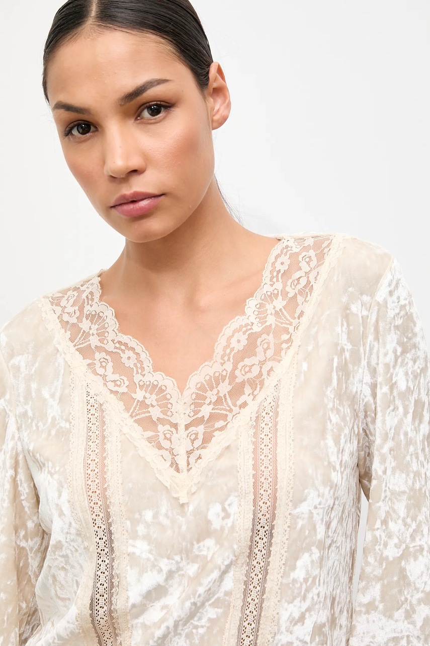 Answear.LAB bluzka welurowa damska kolor beżowy gładka