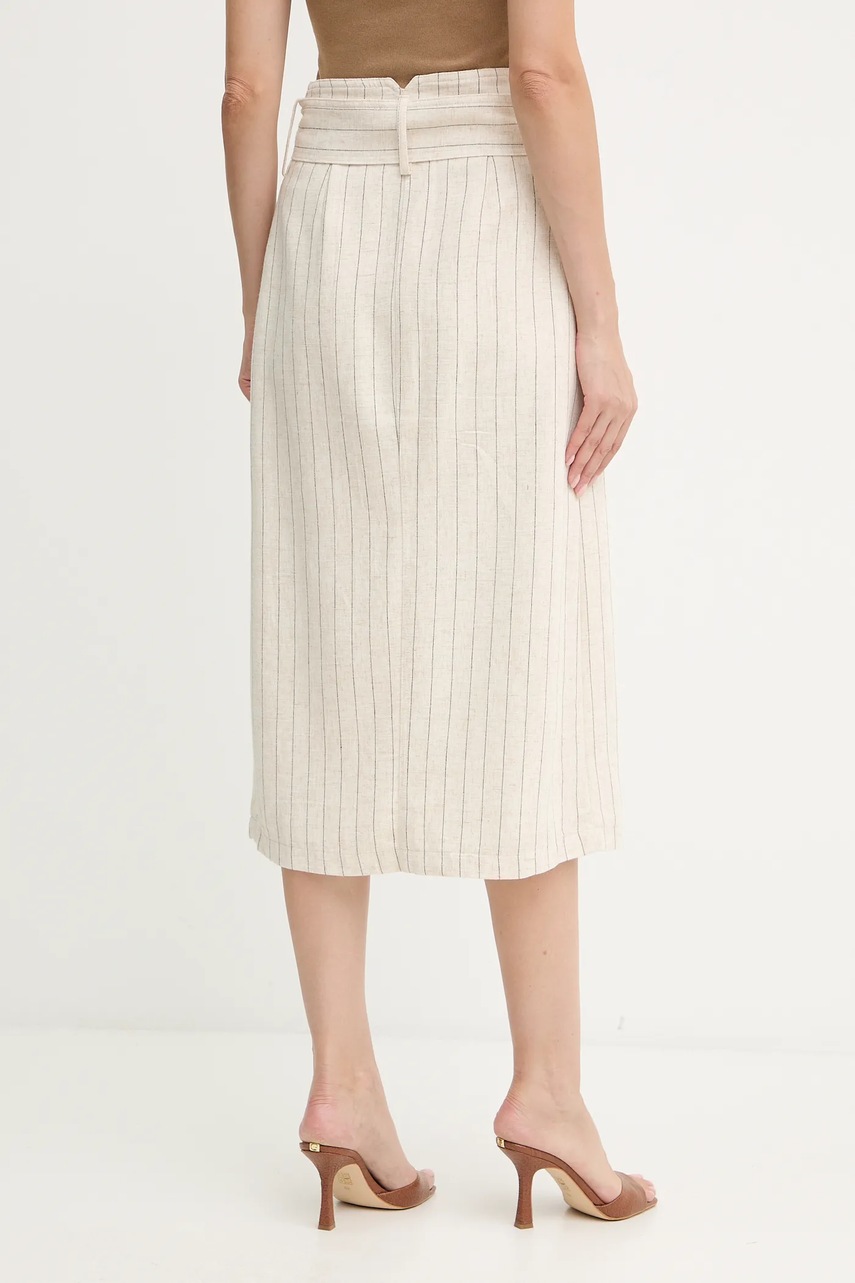 Morgan spódnica z lnem kolor beżowy midi prosta JRIZ.F