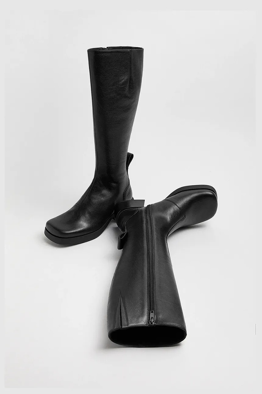 Miista kozaki skórzane Brunildha damskie kolor czarny na płaskim obcasie E8_4057