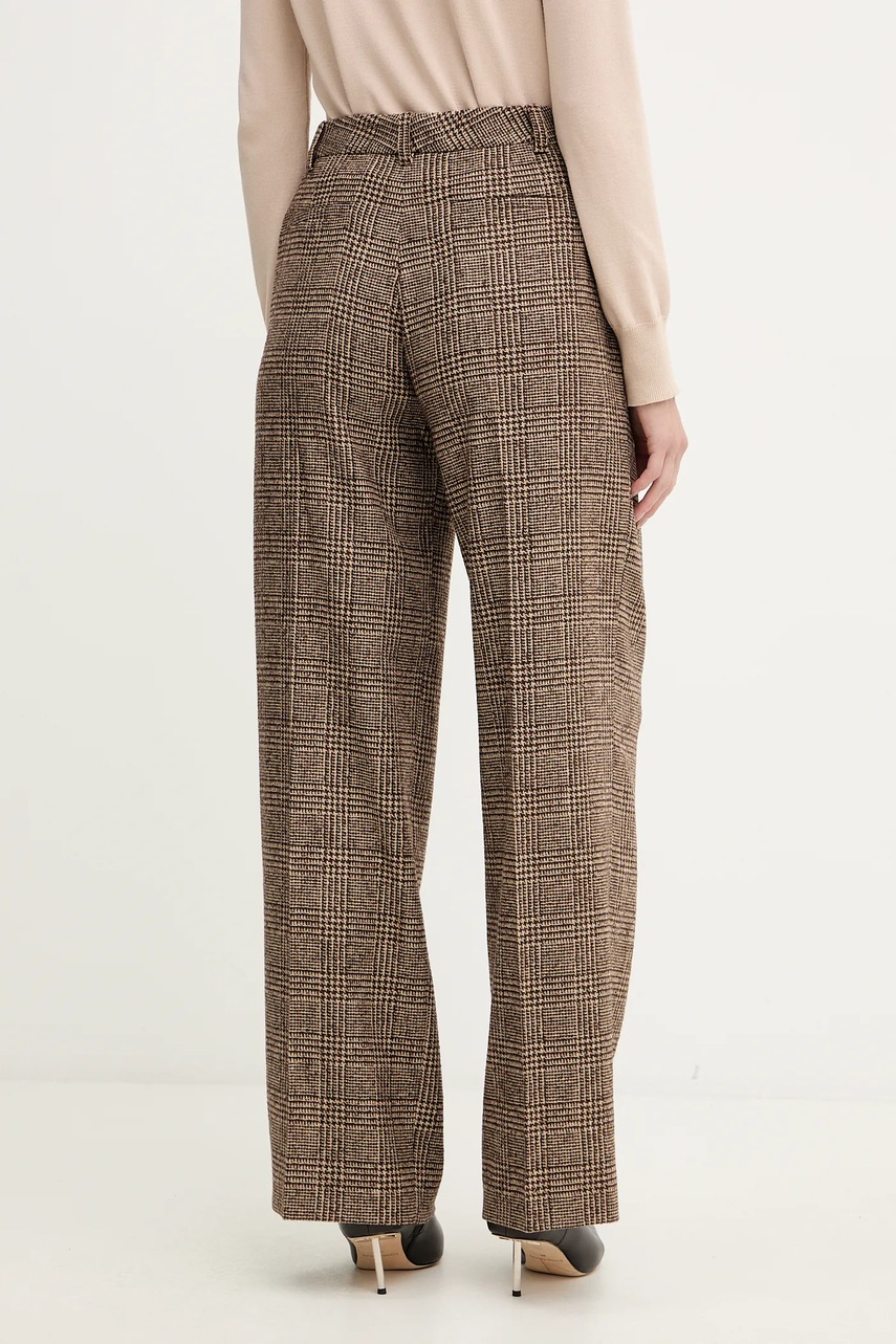 Luisa Spagnoli spodnie z dodatkiem wełny damskie kolor brązowy szerokie high waist 542379
