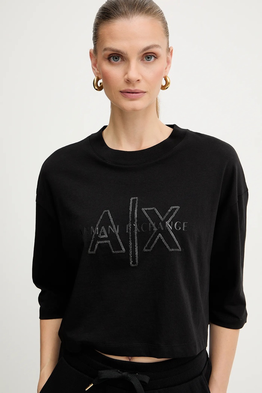 Armani Exchange t-shirt bawełniany damski kolor czarny XW001080 AF10356