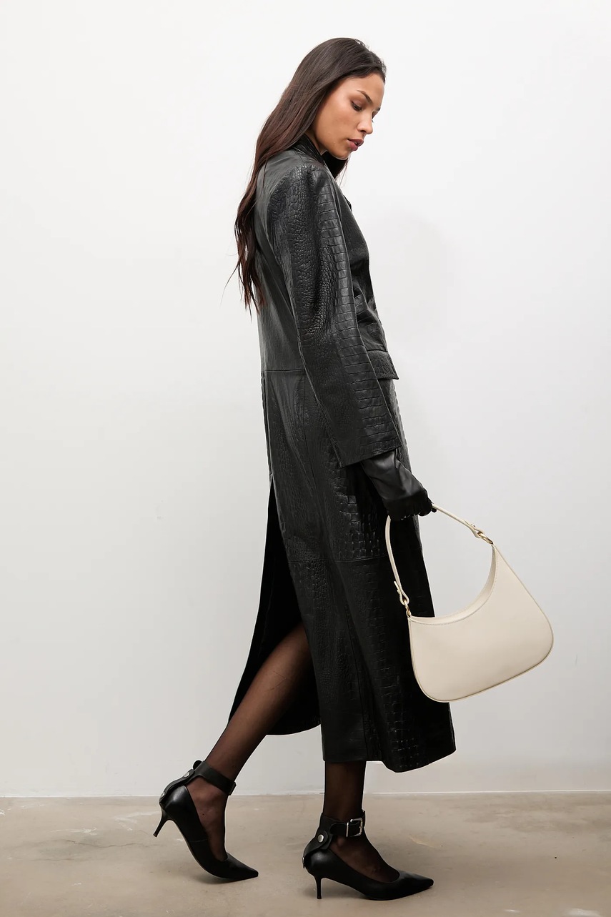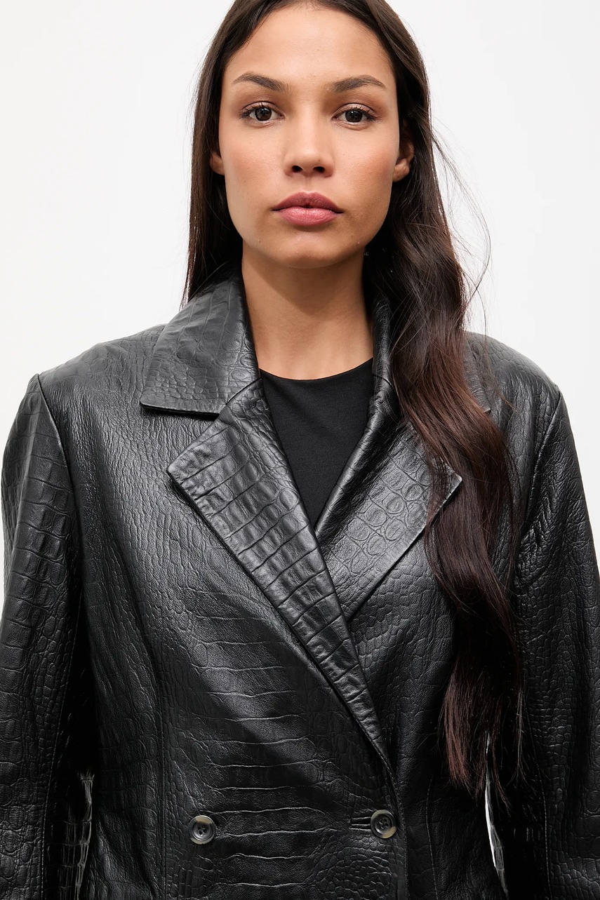 Answear.LAB płaszcz skórzany kolor czarny