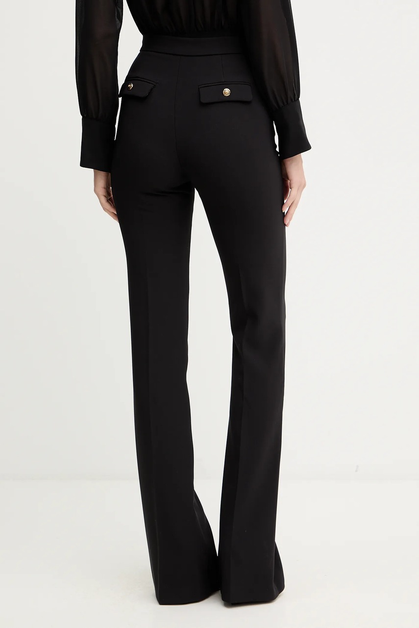 Elisabetta Franchi spodnie damskie kolor czarny dzwony high waist PA14157E2