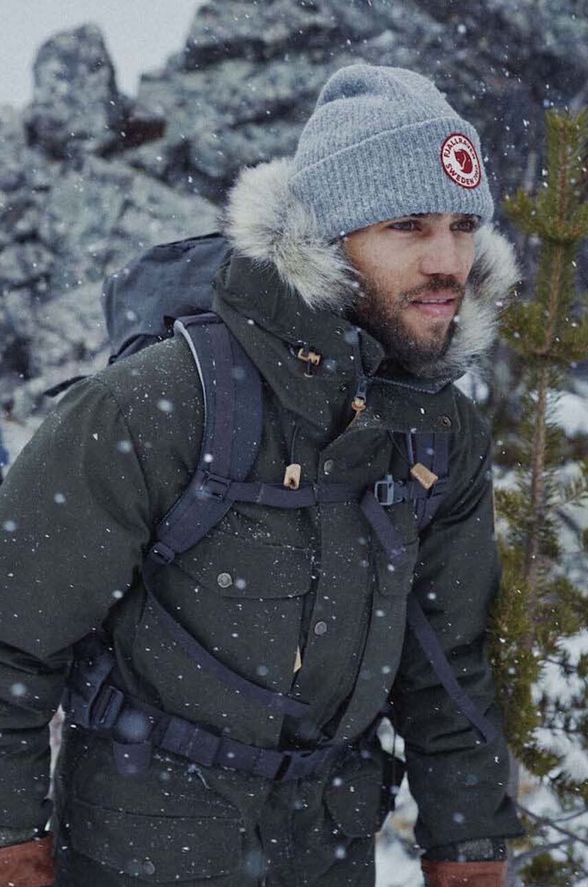 Fjallraven czapka wełniana 1960 Logo kolor szary z grubej dzianiny wełniana