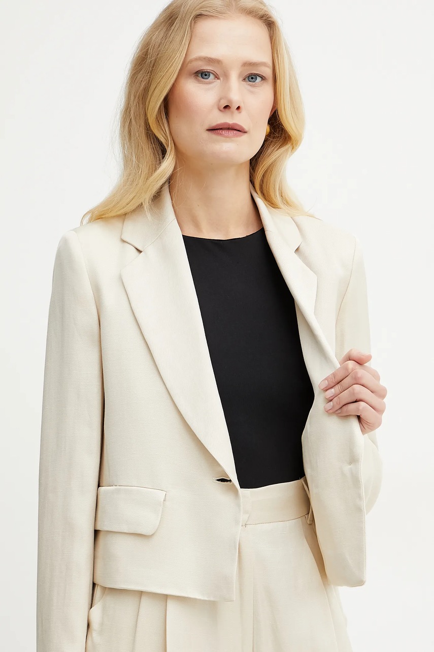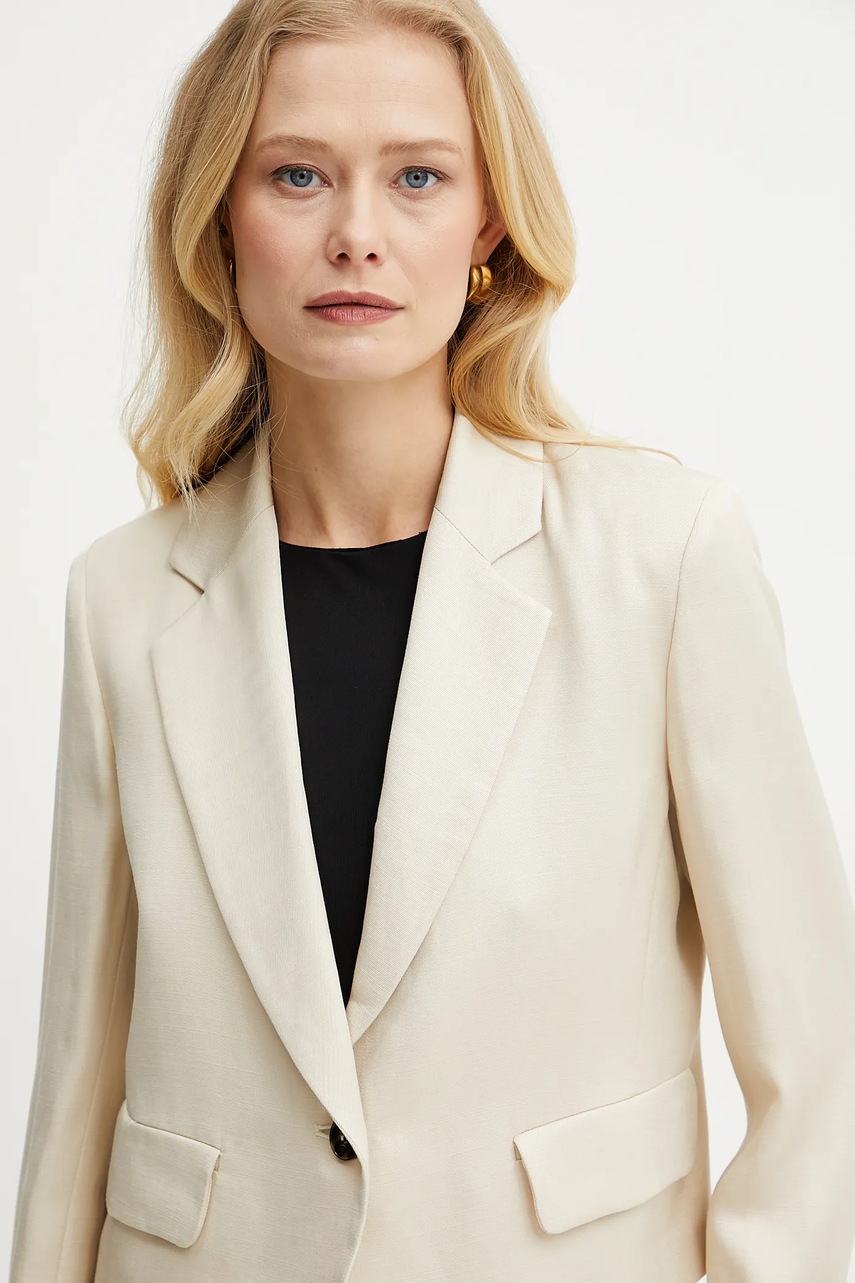 Marella marynarka z domieszką lnu Emme by Marella kolor beżowy jednorzędowa gładka 2515041121200