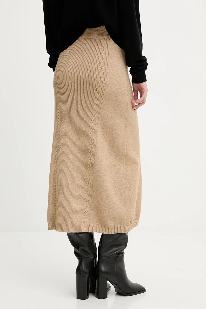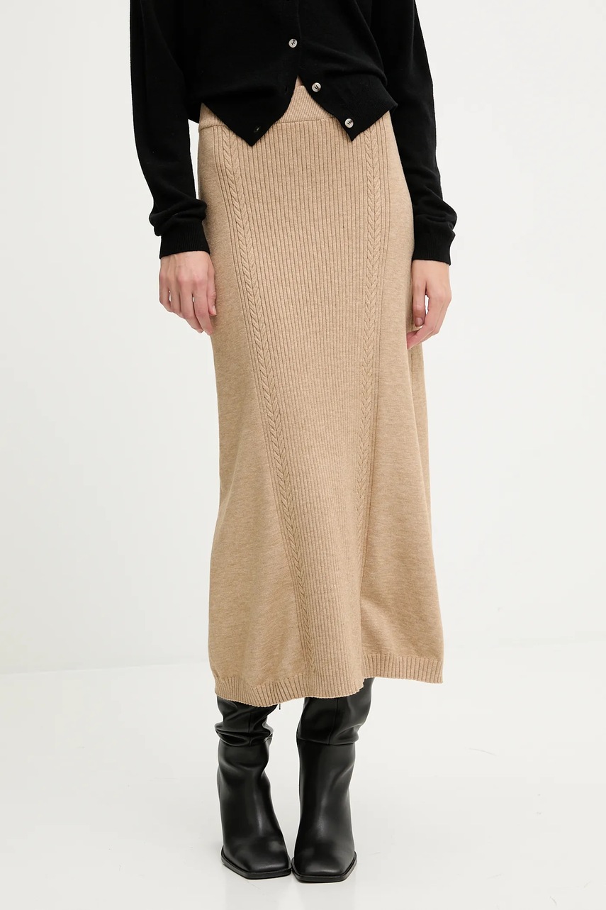 Answear.LAB spódnica z kaszmirem kolor brązowy midi rozkloszowana