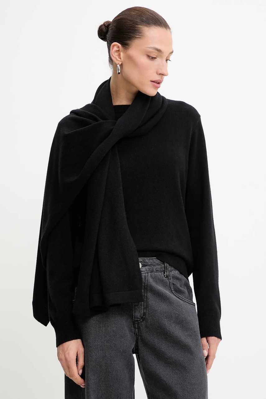 Answear.LAB sweter z wełny merino z szalem damski kolor czarny lekki