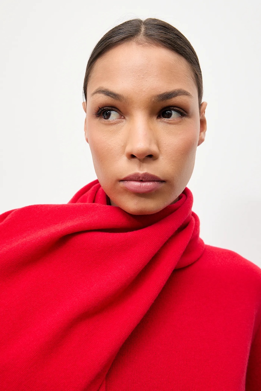 Answear.LAB sweter z wełny merino z szalem damski kolor czerwony lekki