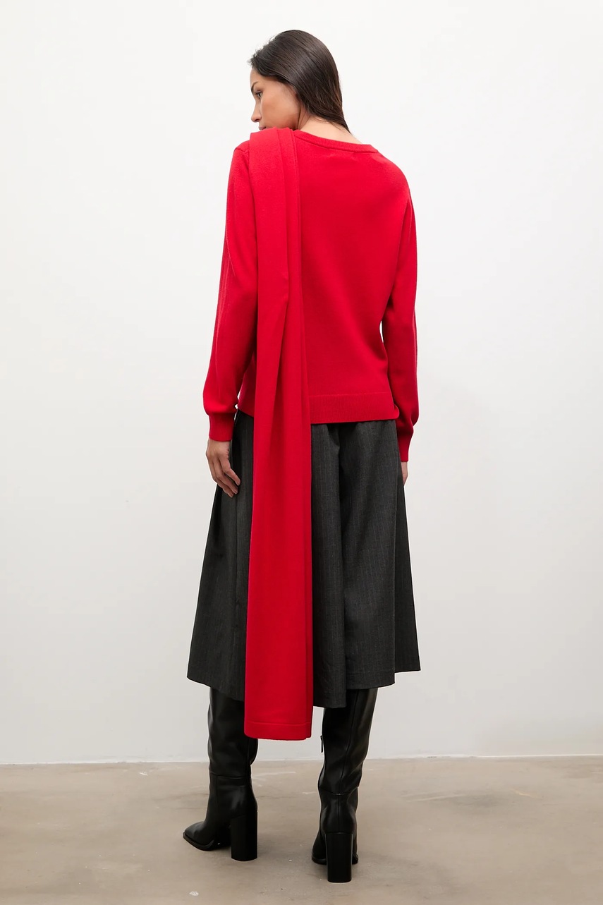 Answear.LAB sweter z wełny merino z szalem damski kolor czerwony lekki