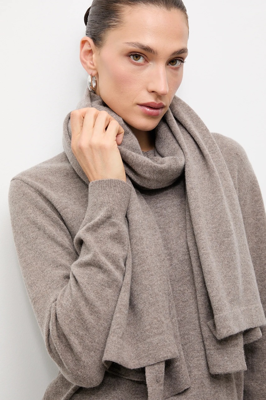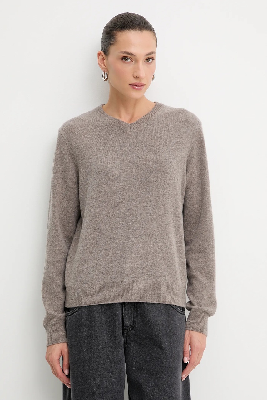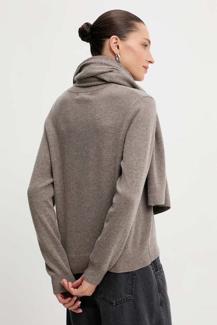 Answear.LAB sweter z wełny merino z szalem damski kolor brązowy lekki