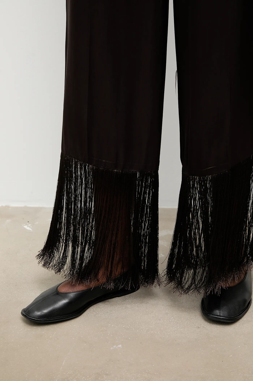 - Model z podwyższoną talią i zapięciem na suwak, guzik i haftki.