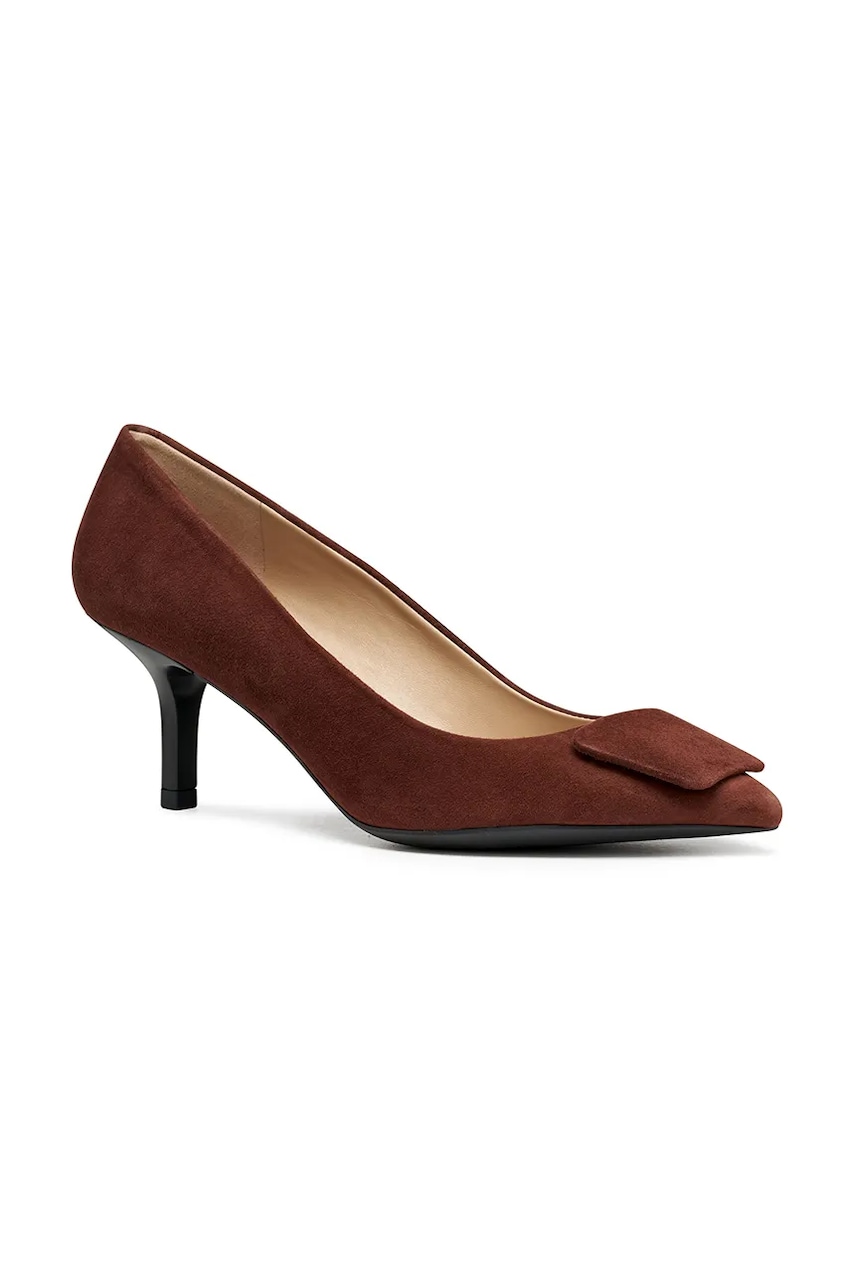 Geox sztyblety zamszowe D KLEOPY kolor brązowy na niskim obcasie D56YBC 00021 C7011