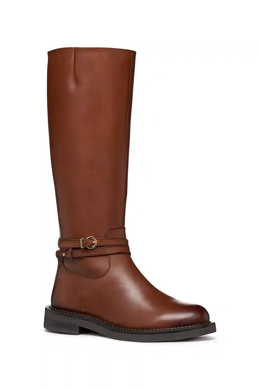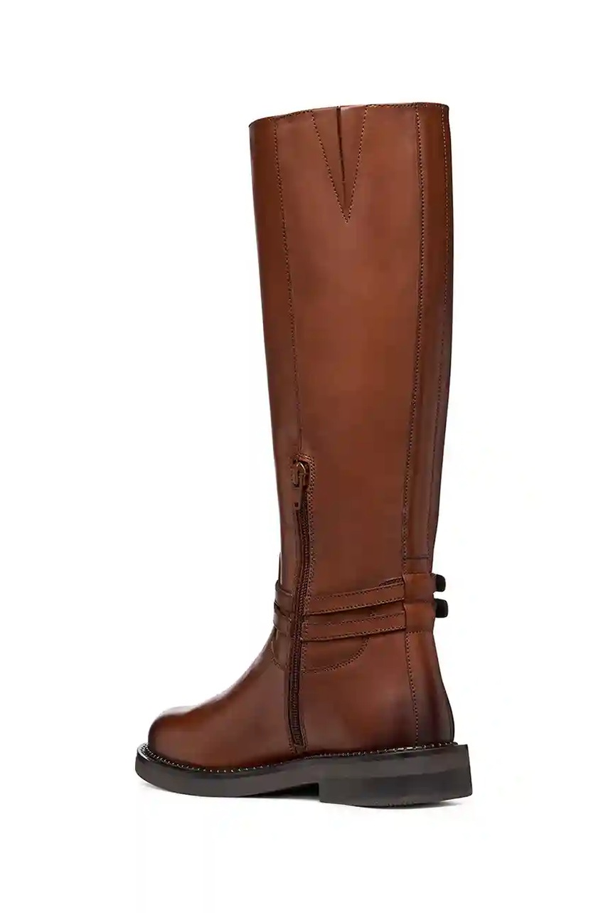 Geox kozaki skórzane D SERILDA damskie kolor brązowy na płaskim obcasie D56WYA 00043 C6002