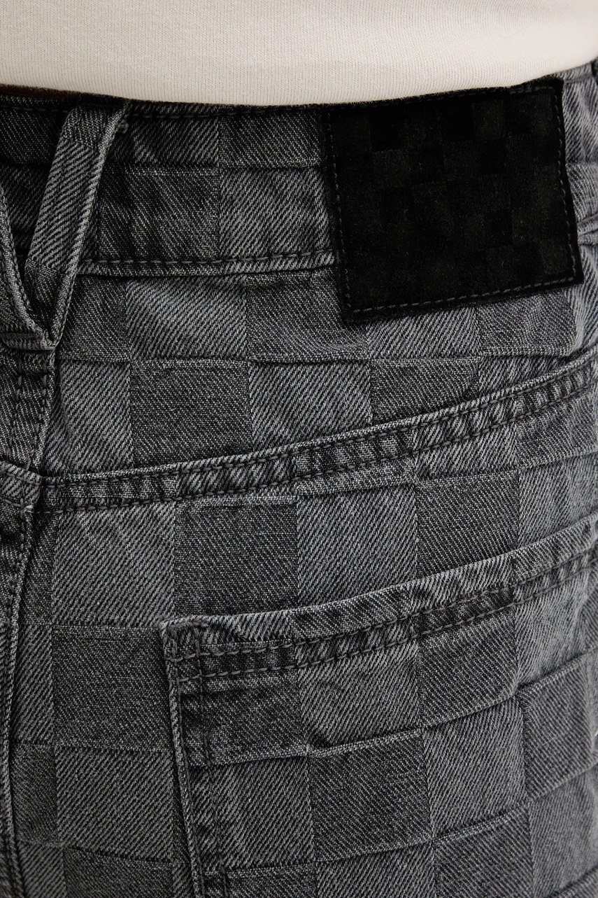 - Model z podwyższoną talią i zapięciem na guzik i suwak.