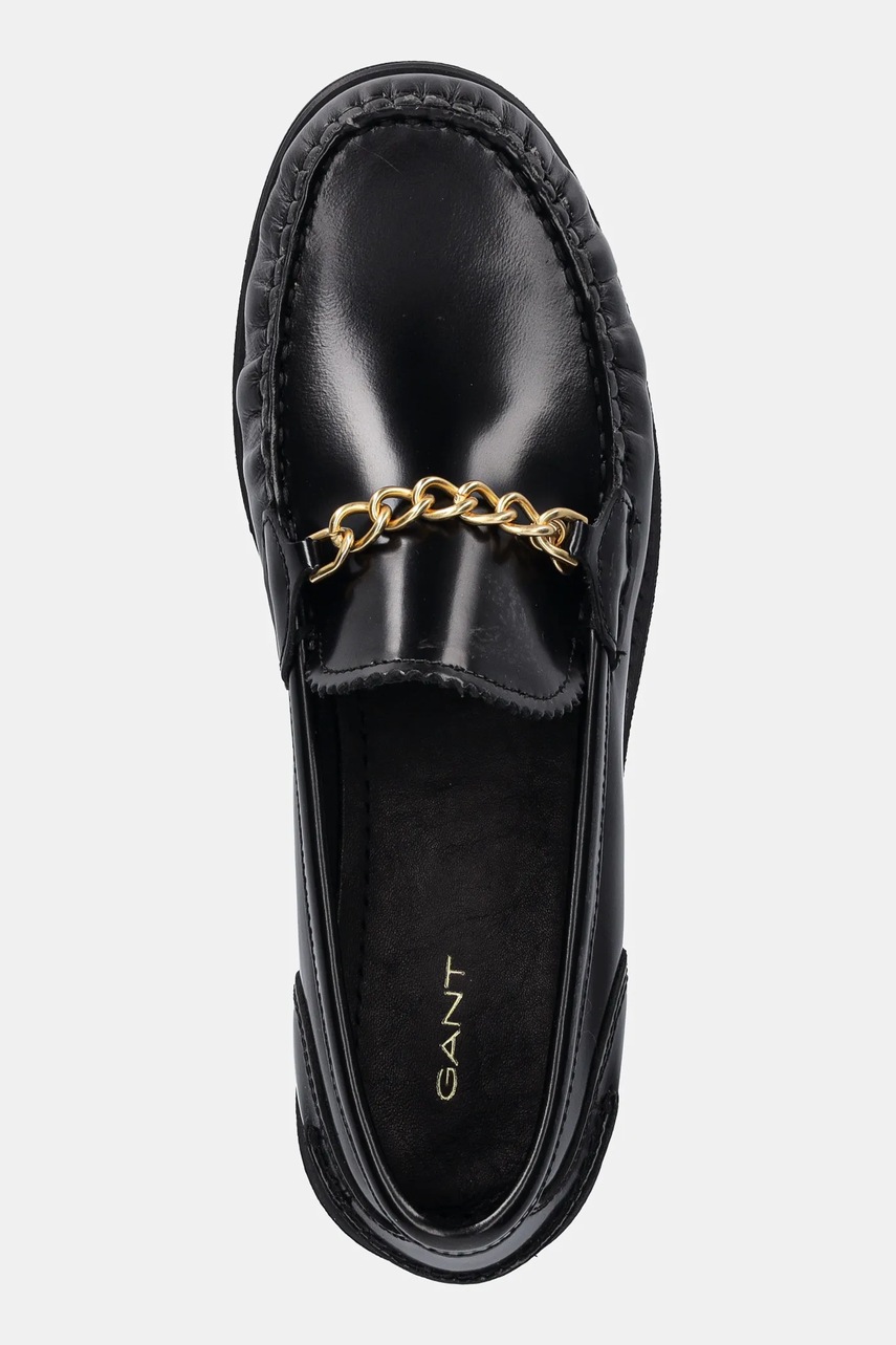 Gant mokasyny skórzane Gracelyn damskie kolor czarny na płaskim obcasie 31571123