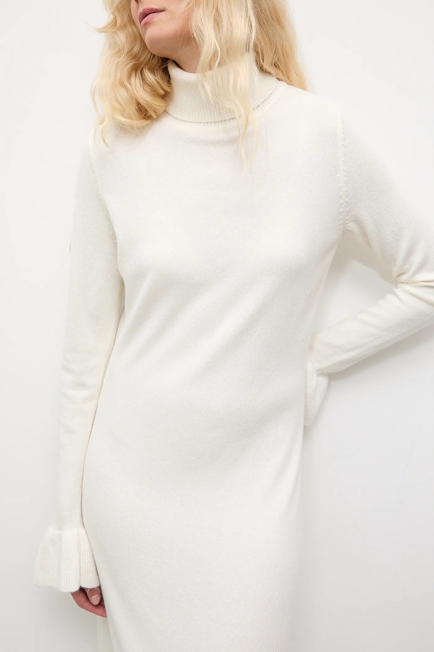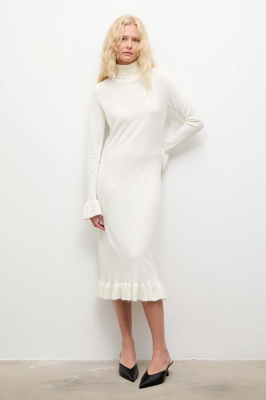 Answear.LAB sukienka z kaszmirem kolor beżowy midi prosta