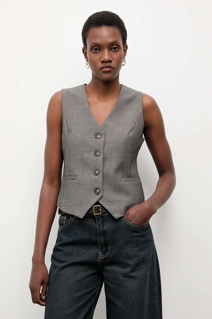 Answear.LAB kamizelka kolor szary jednorzędowa