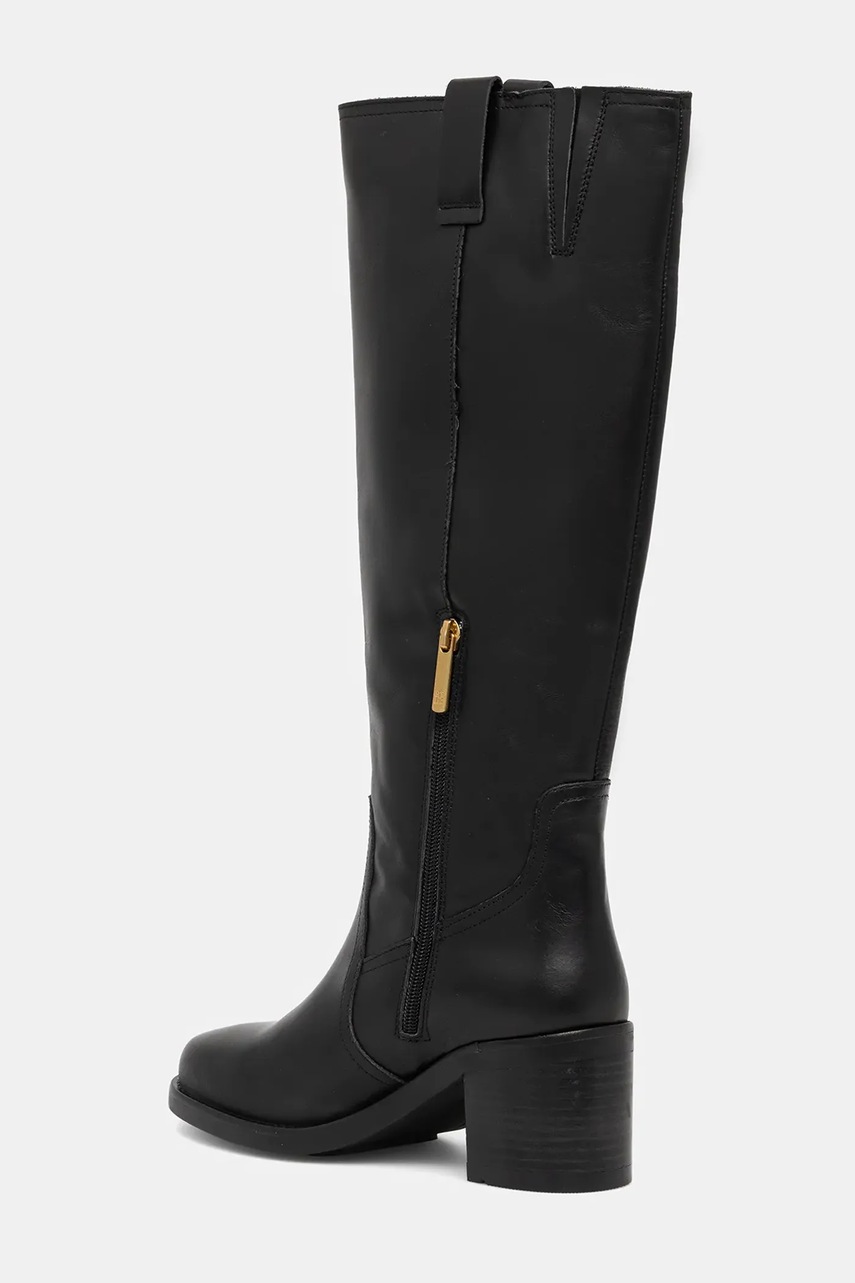 Tommy Hilfiger kozaki skórzane RIDING LTHR LONG BOOT BLOCK HEEL damskie kolor czarny na słupku FW0FW08777