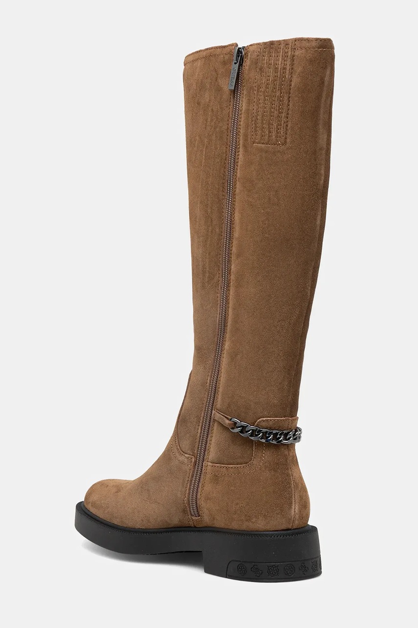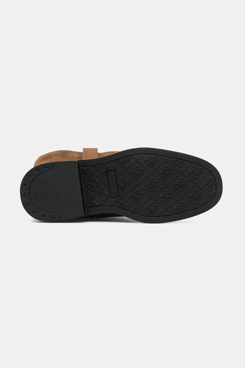Guess kozaki zamszowe FYONAL2 damskie kolor brązowy na płaskim obcasie FLFYN2 LEA11