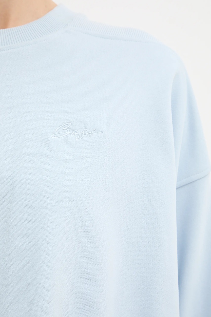 BOSS Orange bluza bawełniana damska kolor niebieski gładka 50554908