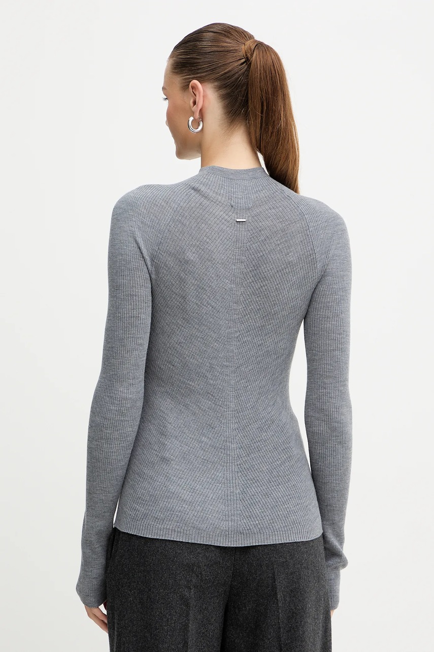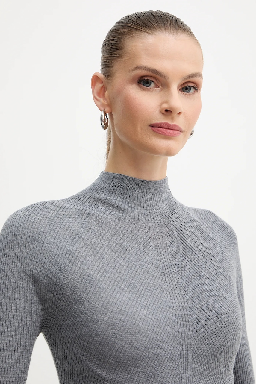 BOSS sweter wełniany damski kolor szary lekki z półgolfem 50549166