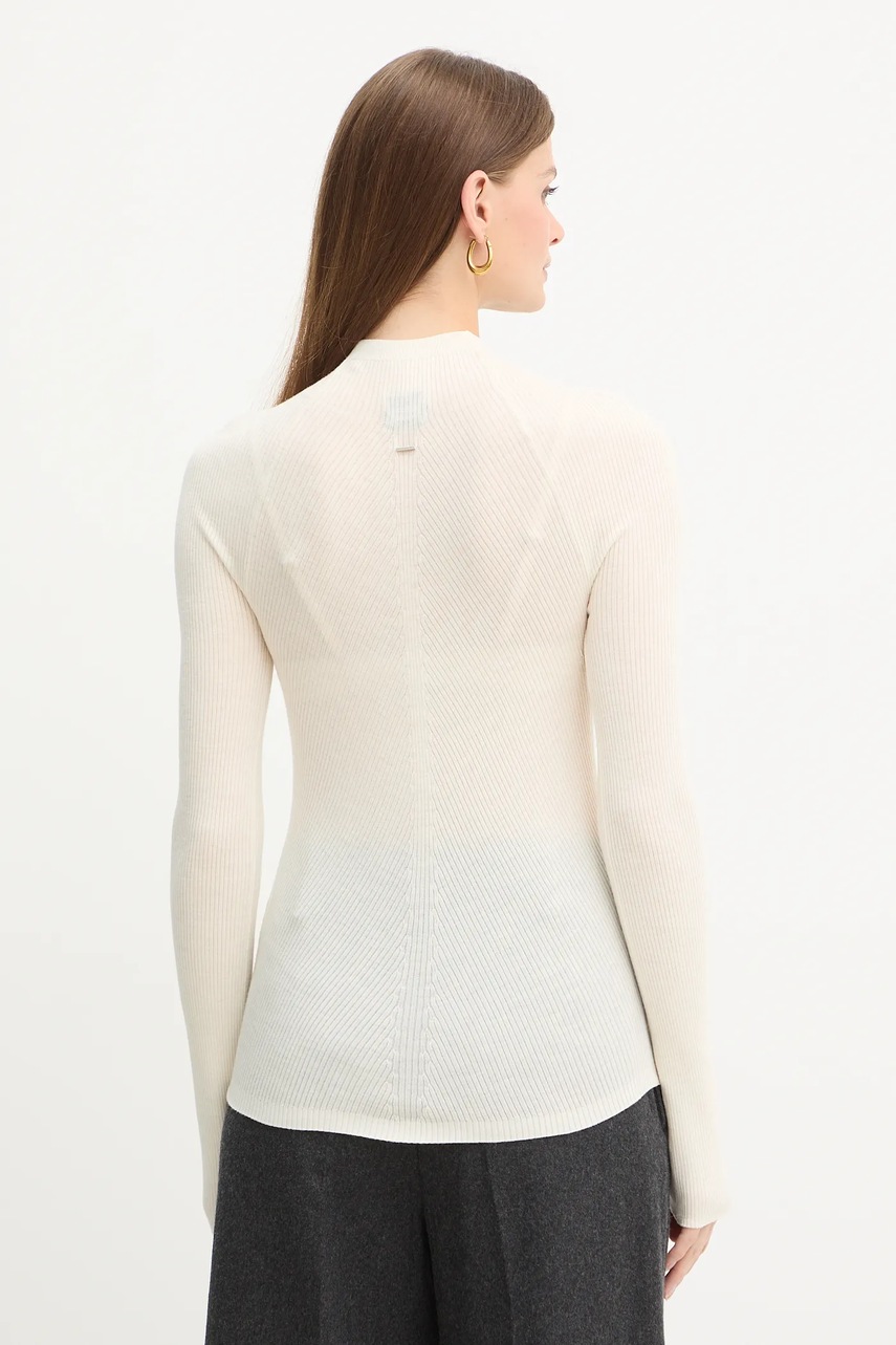 BOSS sweter wełniany damski kolor beżowy lekki z półgolfem 50549166