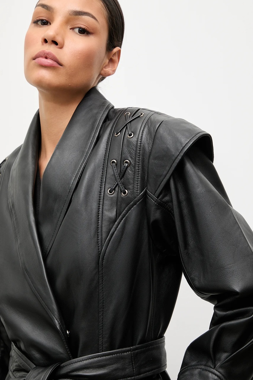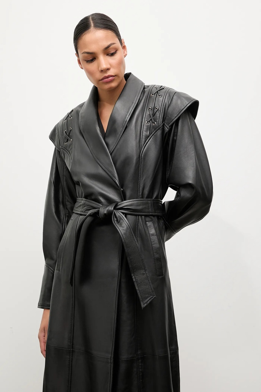 Answear.LAB płaszcz skórzany kolor czarny