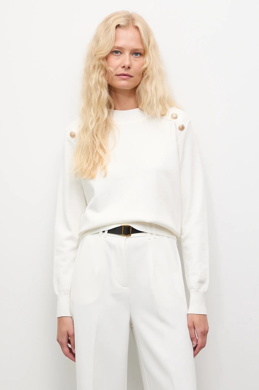 - Sweter w fasonie regular zapewnia wygodę i uniwersalny wygląd. Delikatnie dopasowuje się do sylwetki, ale nie podkreśla jej nadmiernie. Klasyczny i prosty, sprawdzi się zarówno w eleganckich, jak i casualowych stylizacjach.