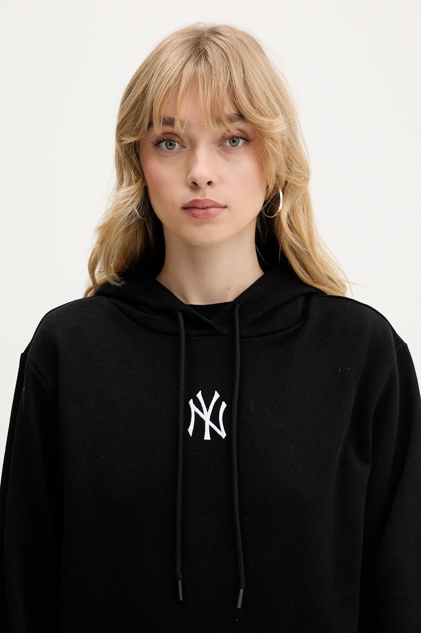 New Era bluza damska kolor czarny z kapturem z aplikacją 60684415