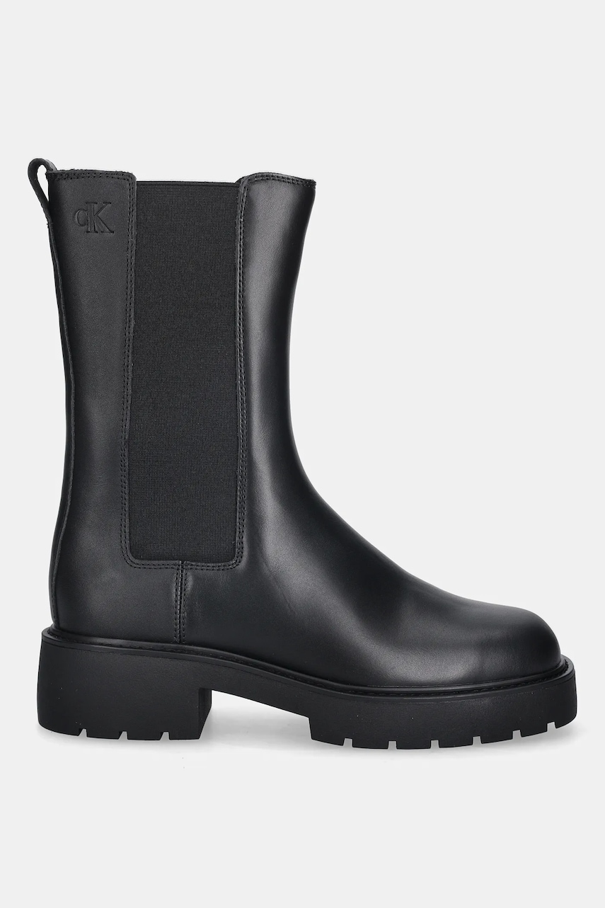 Calvin Klein sztyblety skórzane CHUNKY HIGH CHELSEA kolor czarny na płaskim obcasie YW0YW01909