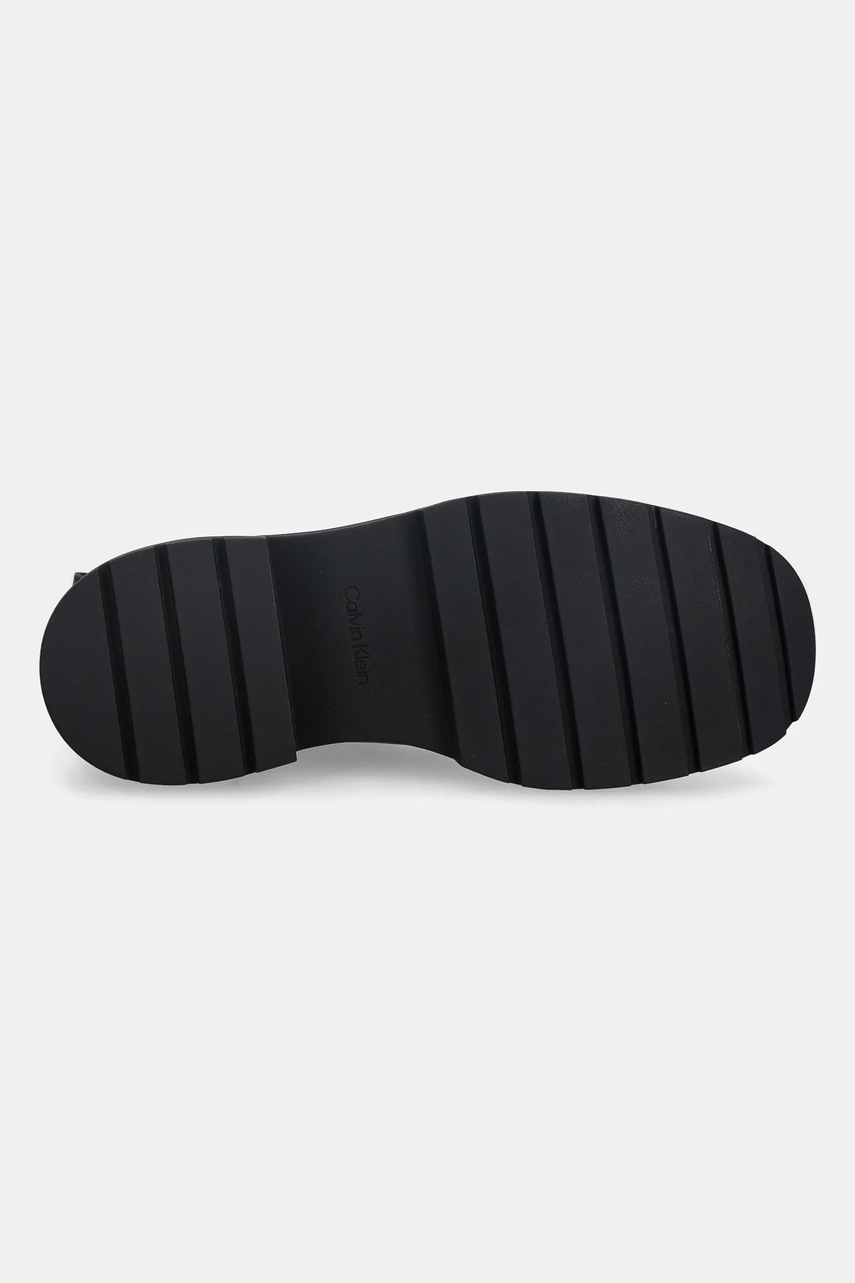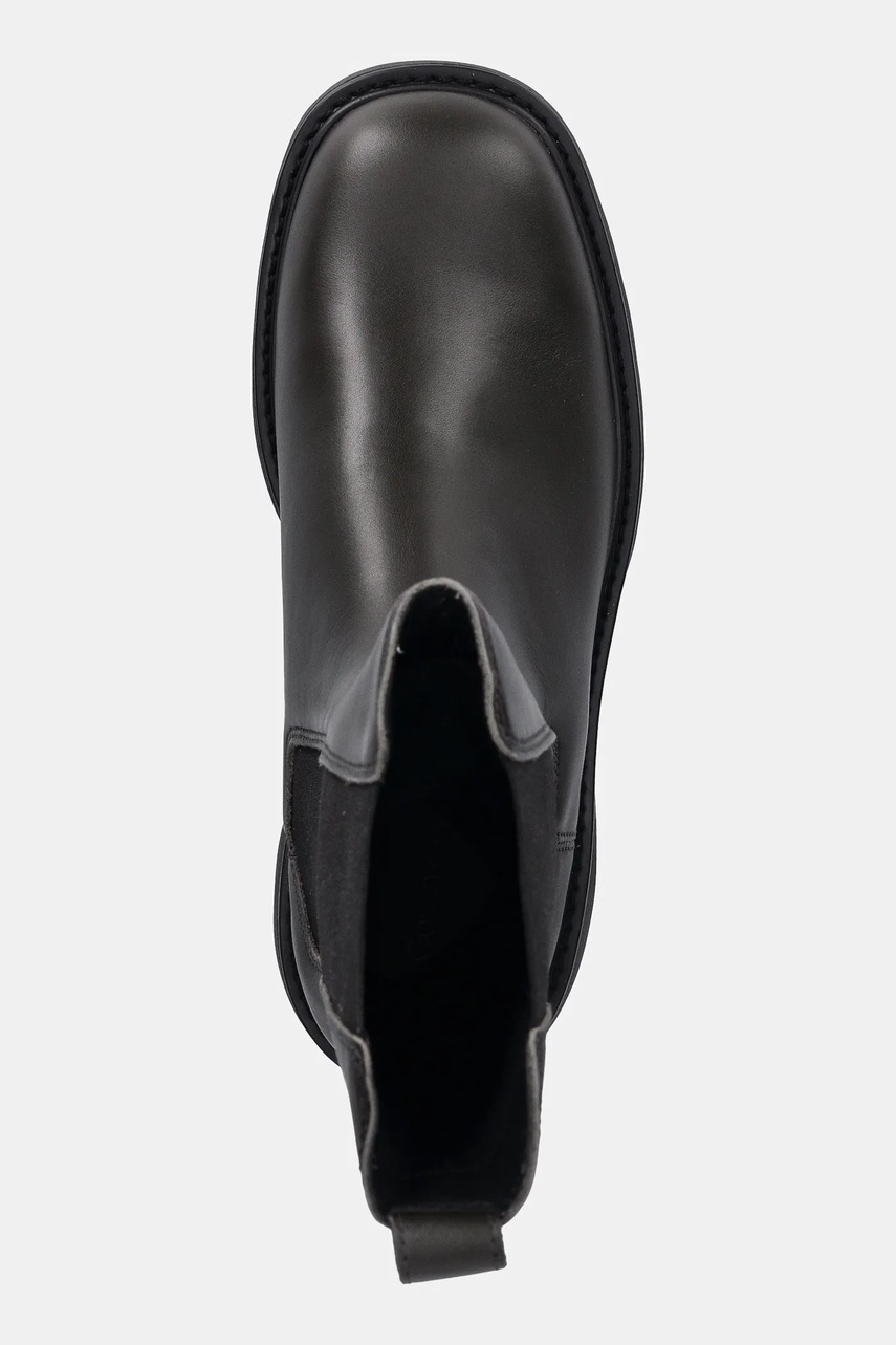 Calvin Klein sztyblety skórzane CHUNKY HIGH CHELSEA kolor zielony na płaskim obcasie YW0YW01909