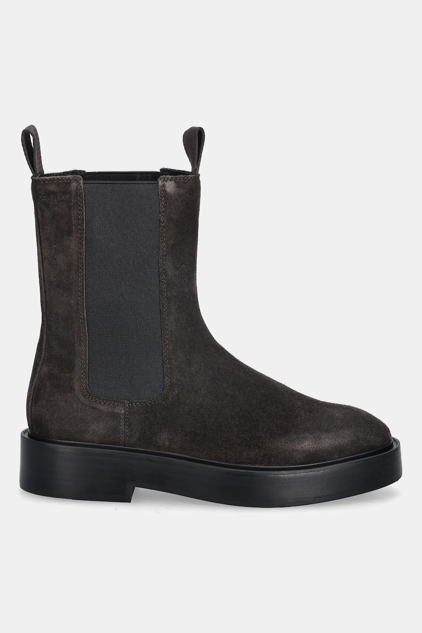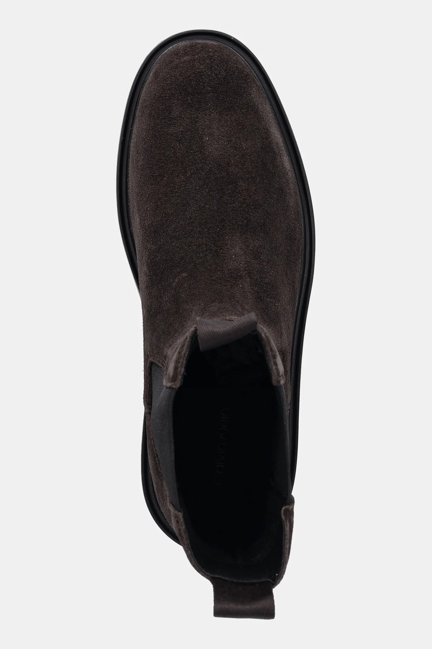 Calvin Klein sztyblety zamszowe CONVAVE WELT CHESEA SUEDE damskie kolor brązowy na płaskim obcasie YW0YW01969