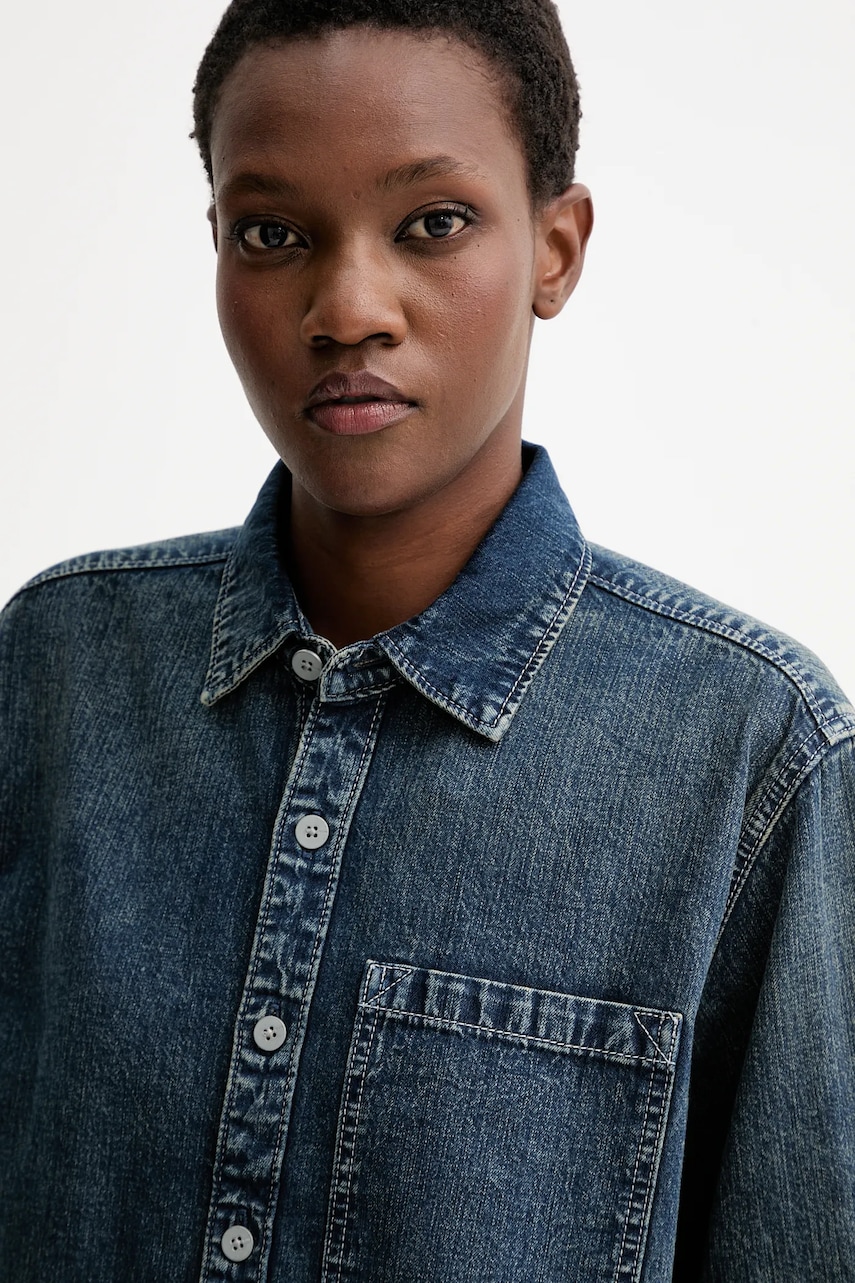 G-Star koszula jeansowa damska kolor niebieski relaxed z kołnierzykiem klasycznym D26801.D777