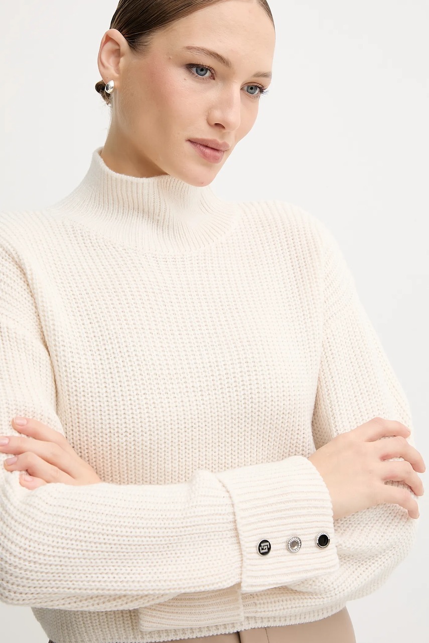 Gaudi sweter damski kolor beżowy ciepły z golfem 521BD53033