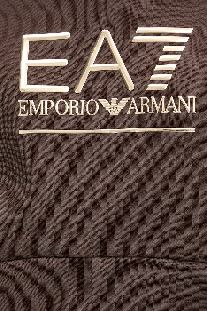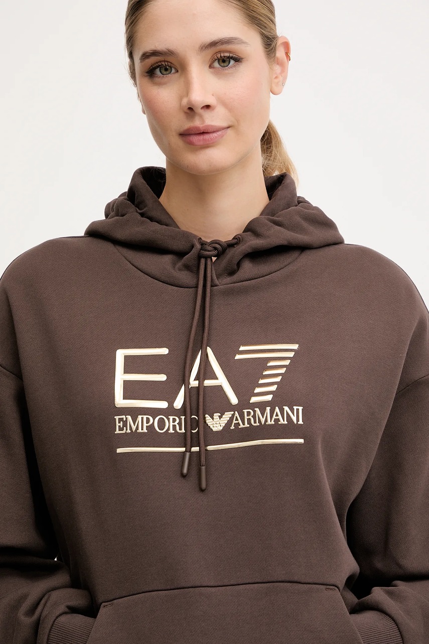 EA7 Emporio Armani bluza damska kolor brązowy z kapturem z aplikacją AF10377-7W000422