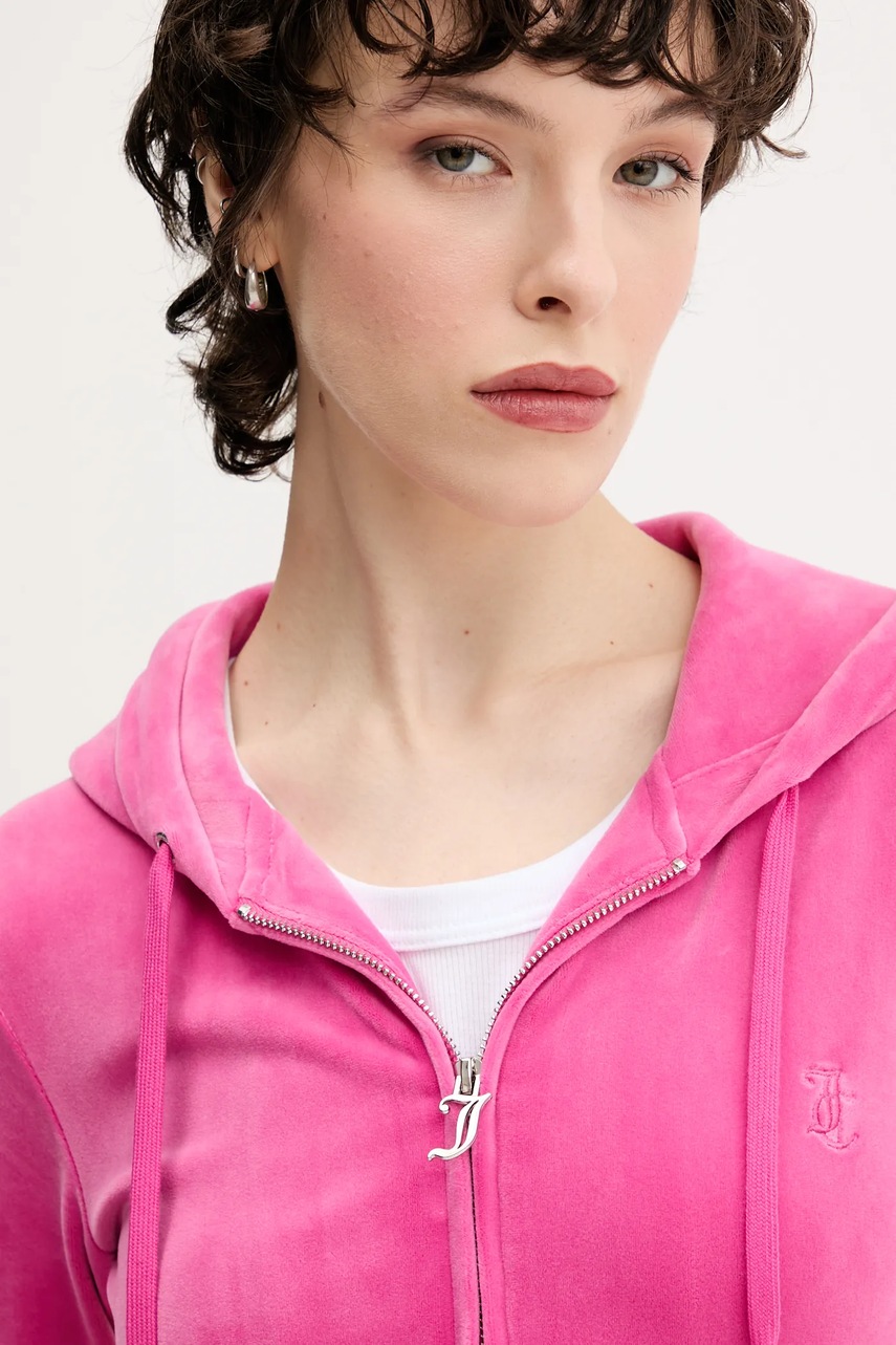 Juicy Couture bluza damska kolor różowy z kapturem gładka JCAP176