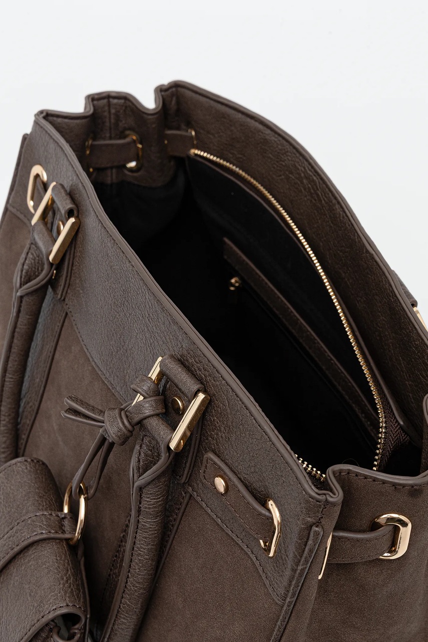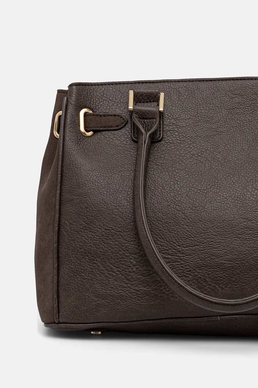- Model wyposażony w metalowe nóżki, które zabezpieczają spód torebki.