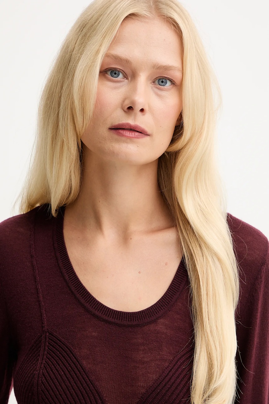 Elisabetta Franchi sweter z dodatkiem wełny damski kolor bordowy lekki MK35S57E2