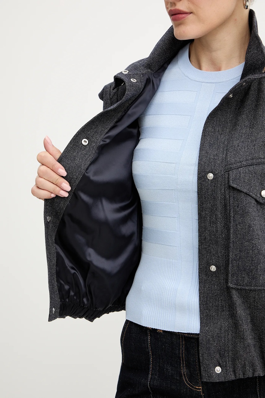 Skład: Materiał zasadniczy: 57 % Poliester, 26 % Wełna, 15 % Wiskoza, 2 % Elastan