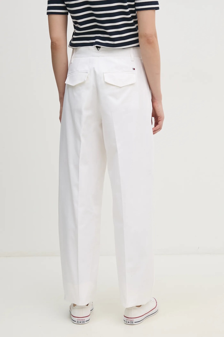 Tommy Hilfiger spodnie bawełniane kolor biały proste high waist WW0WW45487